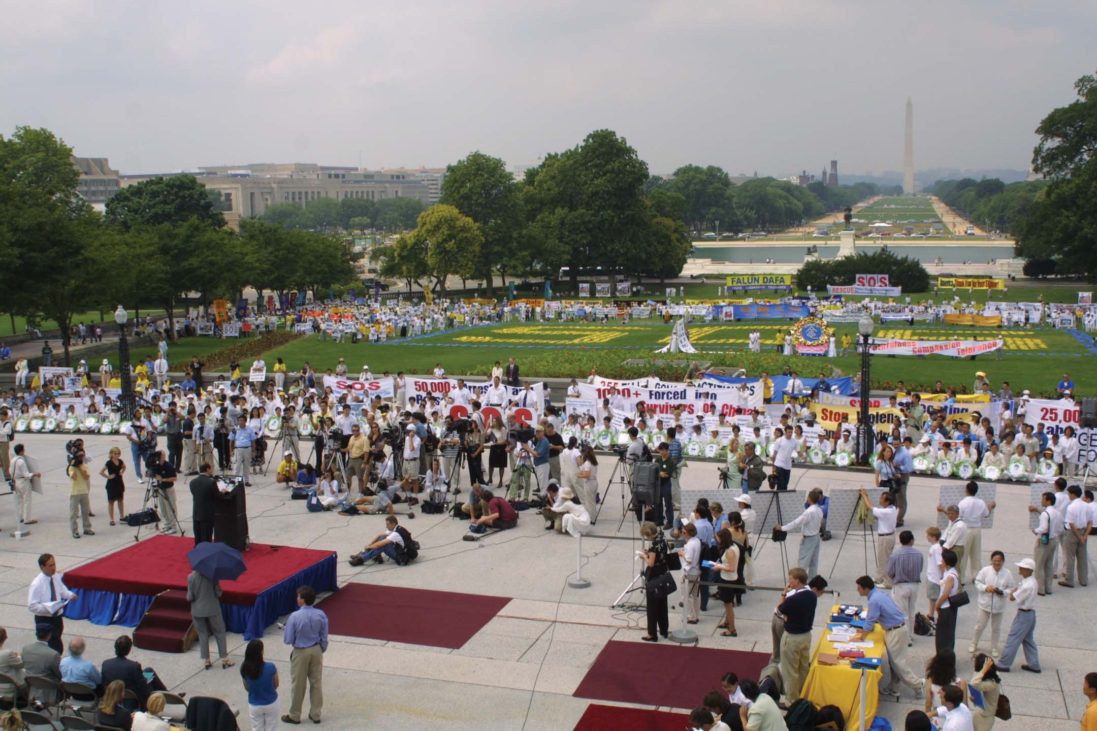 法轮功学员在华盛顿举行大型集会,呼吁中共政府停止迫害法轮功 2001-07-22