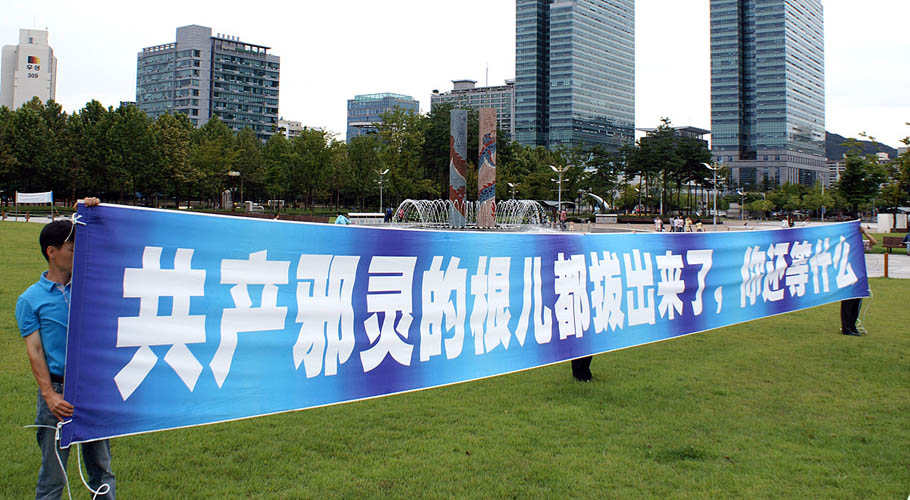 法轮功学员在韩国安阳举办声援二千六百万中国民众三退的集会游行活动2007-9-16