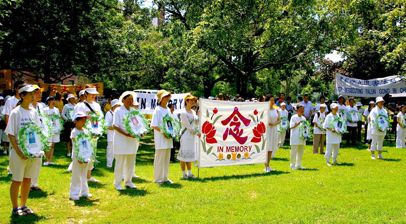 加拿大法轮功学员在多伦多皇后公园集会游行呼吁反迫害,图为悼念被迫害致死的法轮功学员2006-7-16