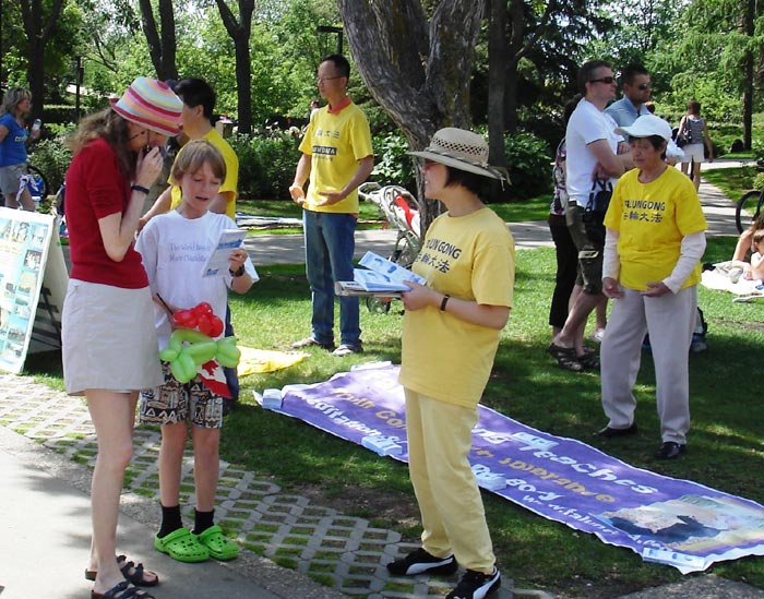 法轮功学员在加拿大国庆节日在埃德蒙顿省议会大厦前广场上洪法讲真相.2007-7-1