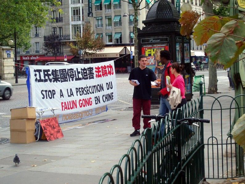 法国法轮功学员在巴黎丹弗尔•罗什鲁广场洪法讲真相 呼吁停止迫害