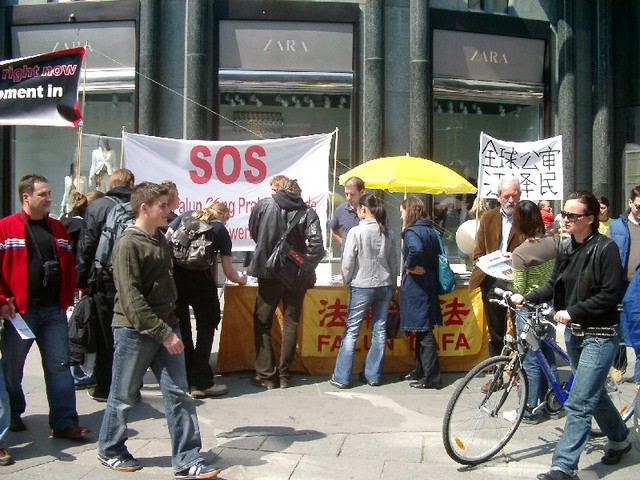 纪念“4.25”和平上访 奥地利学员在维也纳市中心的史帝芬广场揭露迫害真相