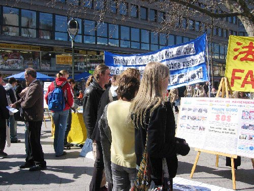 柏林学员在Breitscheid 广场摆放信息摊位和展板揭露中共摘取器官牟取暴利的罪行2006-4-15