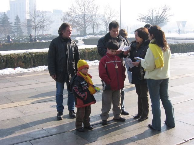 保加利亚索菲亚法轮功学员向游人洪法讲真相