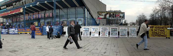 “4.25”六周年 俄罗斯学员在莫斯科市区讲真相 图为活动全景