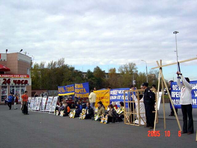 俄罗斯法轮功学员在莫斯科州文化宫广场举行反酷刑展 要求“法办江泽民、罗干、周永康、刘京”