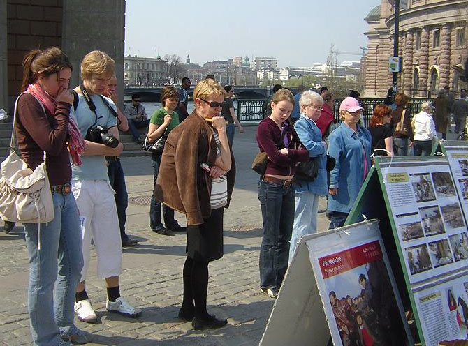 瑞典学员及民众声援千万退党,吁关注中共迫害法轮功、活摘法轮功学员器官的暴行 2006-5-6