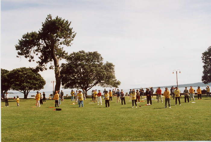 新西兰法轮功学员在布道湾海滩洪法炼功 2000-07-14
