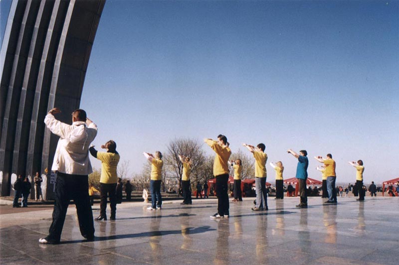 乌克兰法轮功学员在基辅市中心集会, 介绍法轮功真相 2004-04-27