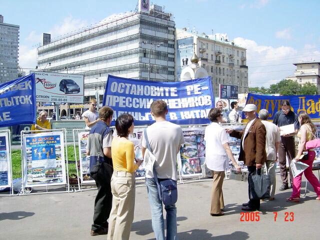 2005年7月23日,俄罗斯莫斯科法轮功学员在市中心讲真相,呼吁制止迫害