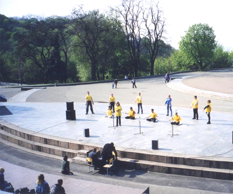 法轮功学员在乌克兰基辅介绍法轮功真相 2002-05-03