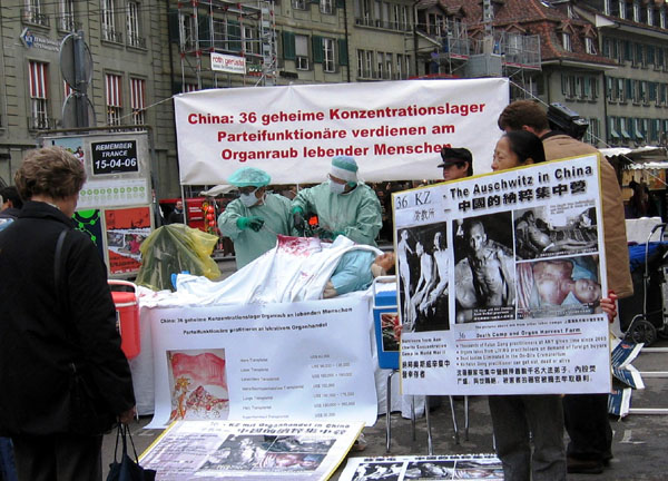 瑞士学员持续在日内瓦繁华商业区,向民众曝光中共劳教所秘密杀害法轮功学员、活体摘器官暴行,吁全面调查真相 2006-4-8/13