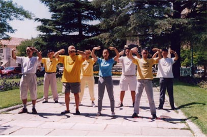 西班牙法轮功学员在塞格维亚市博物馆公园洪法炼功 2003-09-08