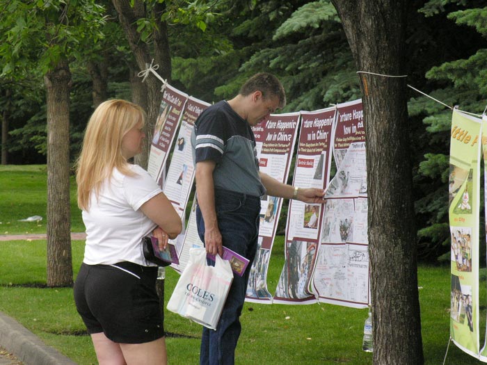 加拿大西部法轮功学员在卡尔加里中国城举行集会,向人们介绍在中国正在发生的迫害