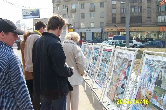 法轮功学员莫斯科市中心展示真相横幅及展板讲真相,呼吁停止在中国对法轮功学员的迫害