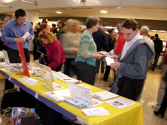 著名摇滚歌星, 法轮功学员大卫-鲍伊在音乐会进口处设置“法轮功之友”的展位 2004-02-11