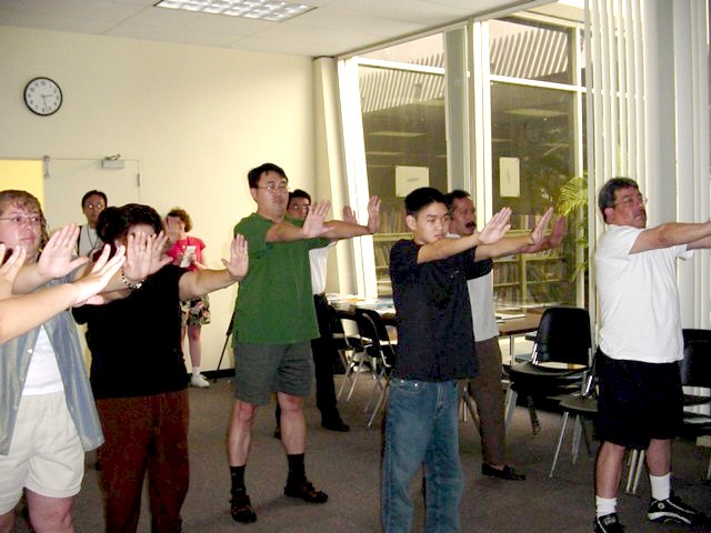 加州法轮功学员在城市公共图书馆演示功法 2003-08-10