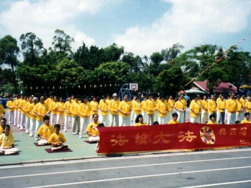 法轮功学员在神冈乡圳堵国小运动大会上演示功法 2001-06-15