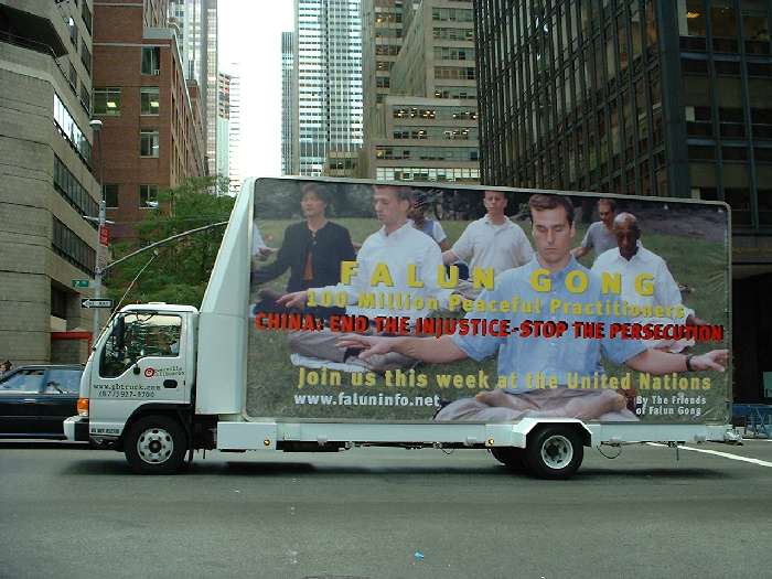 行驶在曼哈顿闹市的法轮功广告车 2000-09-10