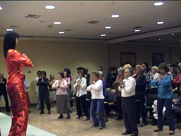 法轮功学员在意大利都灵文化、医学交流大会上, 介绍法轮功