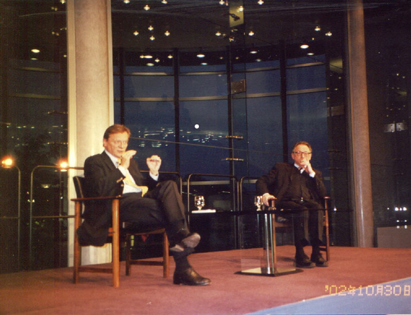 在奥地利总理大选期间,法轮功学员向各位候选人介绍法轮功真相, 图为奥地利现任总理回答提问 2002-11-27