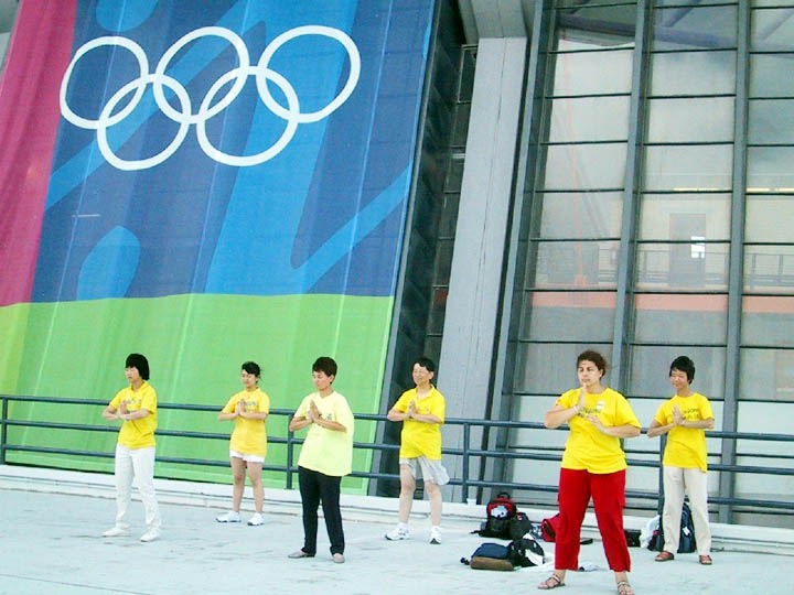 雅典奥运会期间, 法轮功学员在奥运场地附近展示功法 2004-08-19