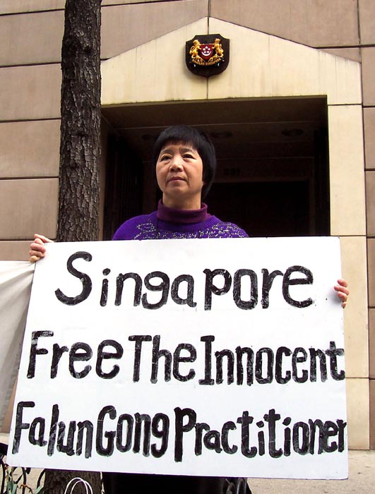 纽约法轮功学员吁新加坡当局勿充当中共帮凶 立即释放无辜的法轮功学员