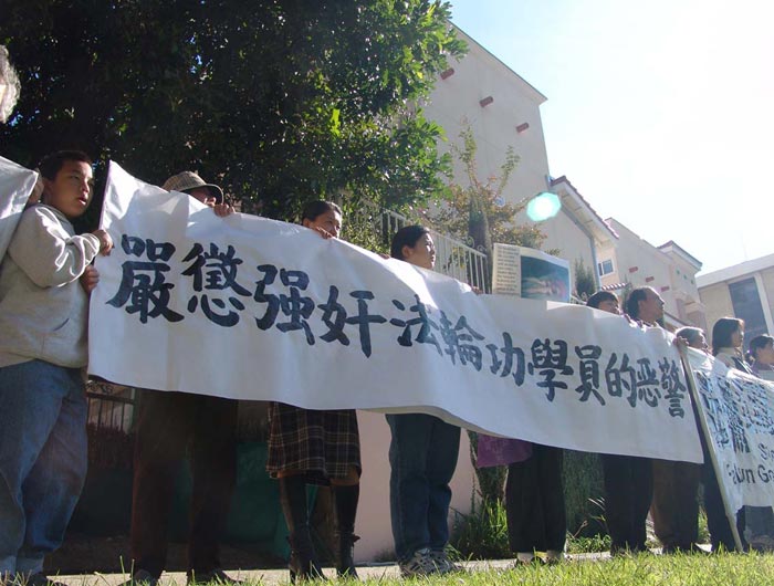 洛杉矶民众中领馆前集会 谴责中共恶警强奸兽行 2005-12-7
