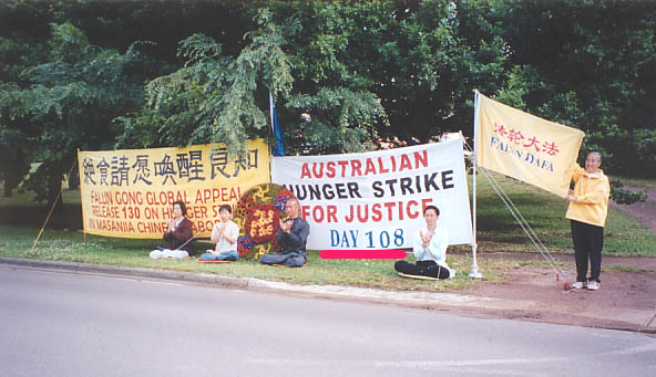 坎培拉法轮功学员在中国大使馆前和平请愿第108天 澳大利亚 2001-12