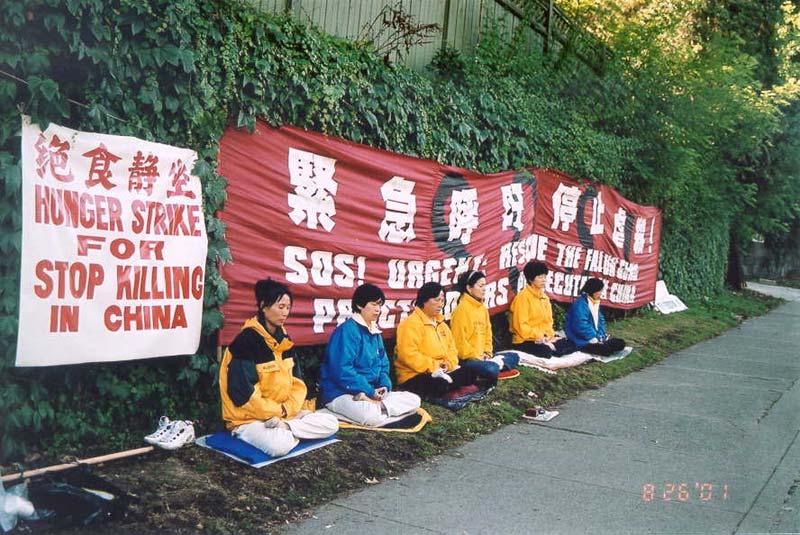 温哥华法轮功学员300小时接力绝食请愿 呼吁各界关注在中国马三家劳教所被非法关押被迫绝食抗议的同修 加拿大 2001-8
