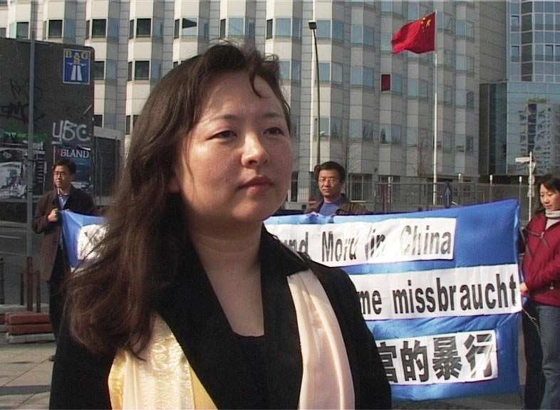 “调查真相委员会”成员周蕾女士被中领馆拒签学员在柏林中使馆前和平抗议,06-4-19