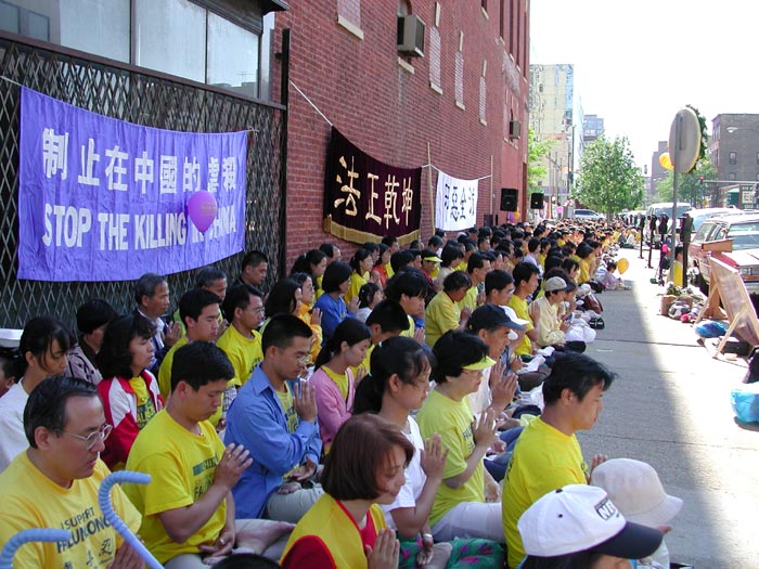 法轮功学员在芝加哥中领馆前,呼吁停止迫害法轮功 2001-06