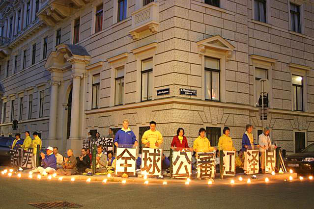 法轮功学员在奥地利中国大使馆前和平请愿,呼吁停止迫害法轮功,法办江泽民 2004-06-17