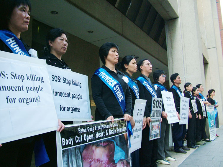悉尼民众在澳总理办公楼前紧急呼吁,同时有十多名市民全天绝食,要求协助调查真相,制止对法轮功的残酷迫害 2006-4-19/20