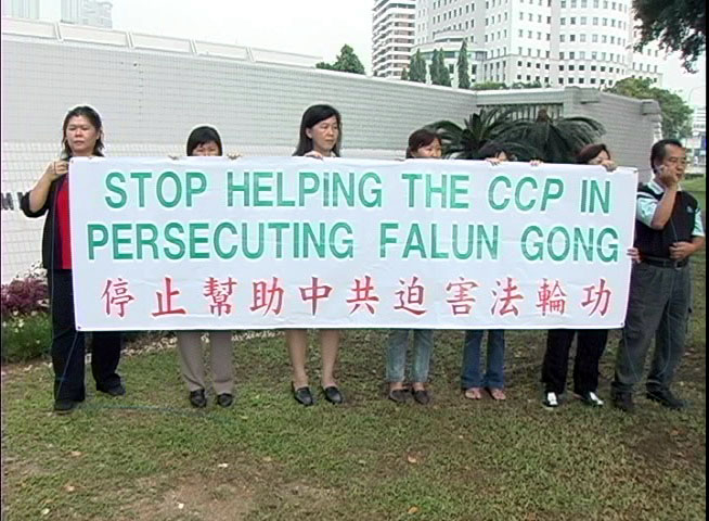 马来西亚法轮功学员在新加坡最高专员署外请愿,向最高专员署递交请愿信