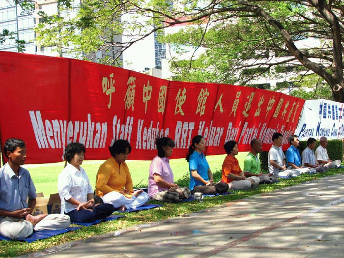 法轮功学员在雅加达中使馆前和平抗议并声援二千三百万退党勇士2007-7-11