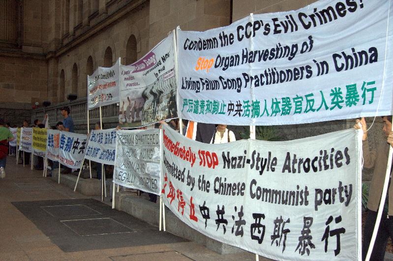 法轮功学员在澳洲布里斯本中领馆对面和平抗议香港遣返事件揭露中共暴行2007-7-3