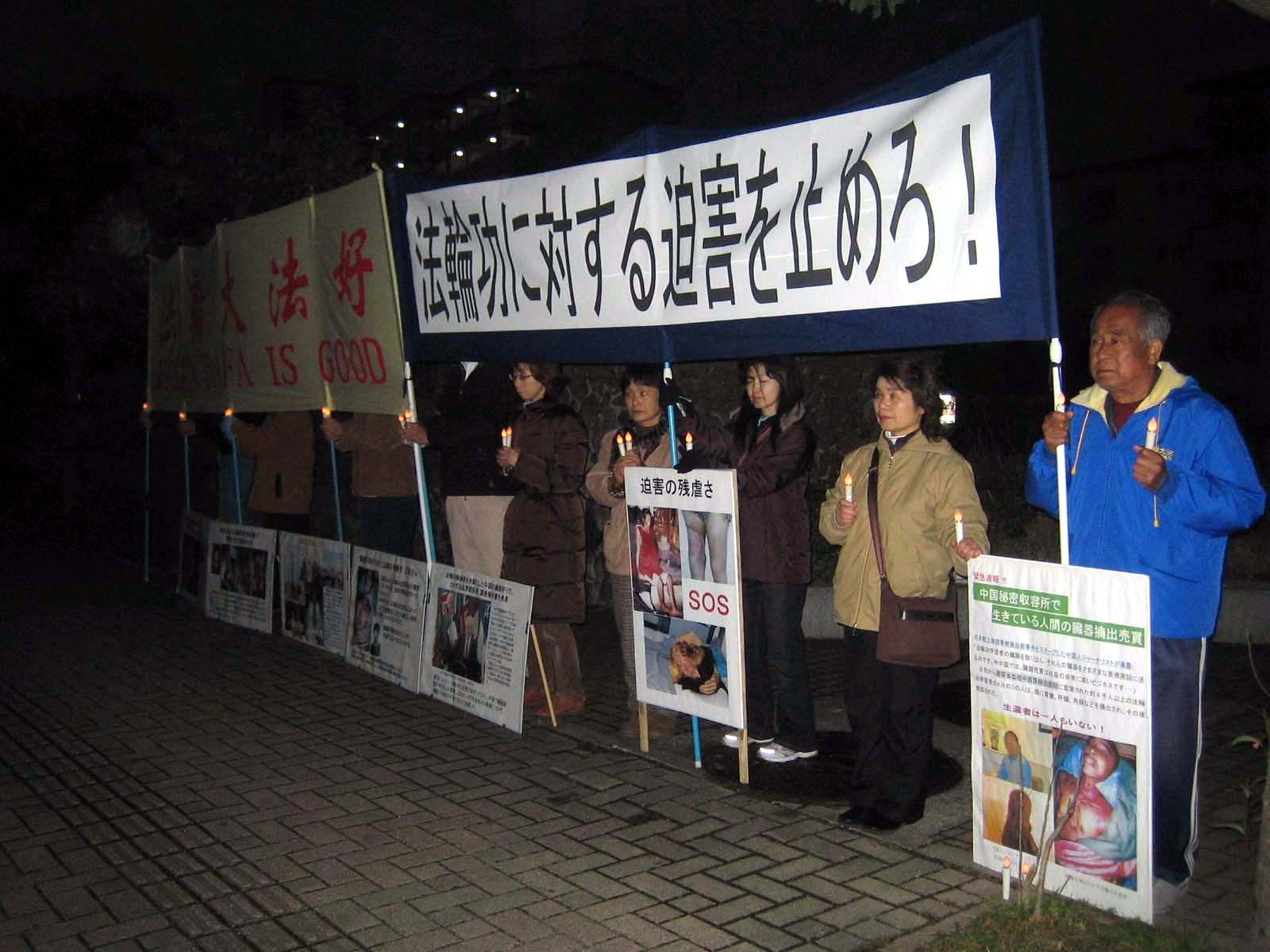 法轮功学员大年初一在日本福冈中领馆前和平抗议中共惨无人道的迫害大法弟子2007-2-18.
