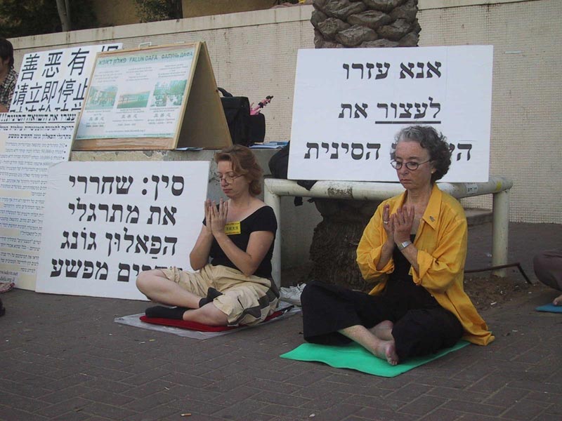 以色列法轮功学员在中国使馆门前就万家劳教所残酷虐杀15名法轮功学员一事和平抗议 强烈要求制止虐杀 以色列 2001-7