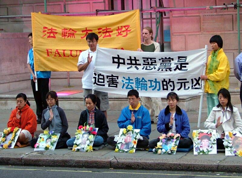 7.20六周年 英国法轮功学员伦敦中使馆前的和平请愿