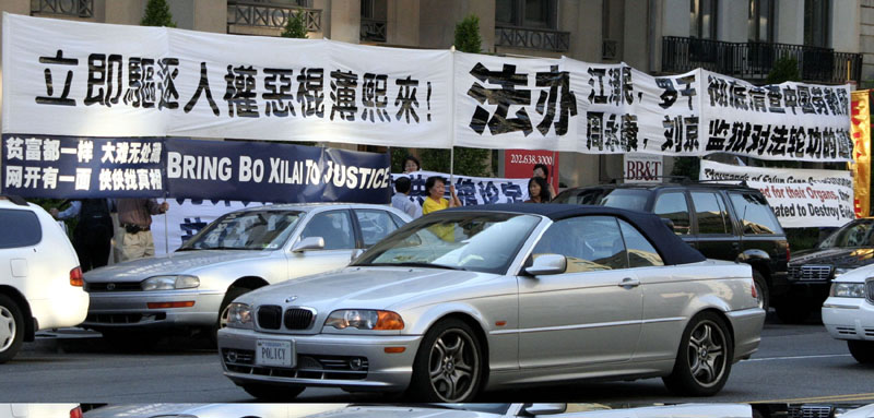 华府法轮功学员在中共经贸代表团出席宴会的华盛顿DC的酒店外举行抗议活动 要求美国政府驱逐人权恶棍薄熙来 2007-5-24