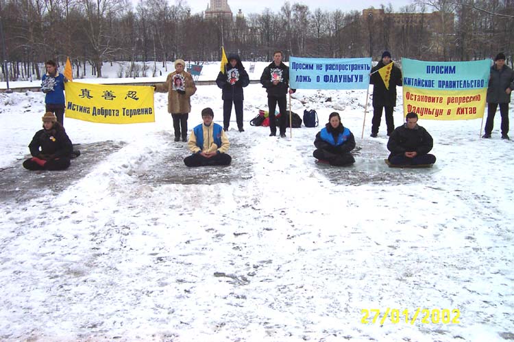 俄罗斯法轮功学员在中国大使馆前和平抗议对法轮功学员的虐杀 俄罗斯 2002-1