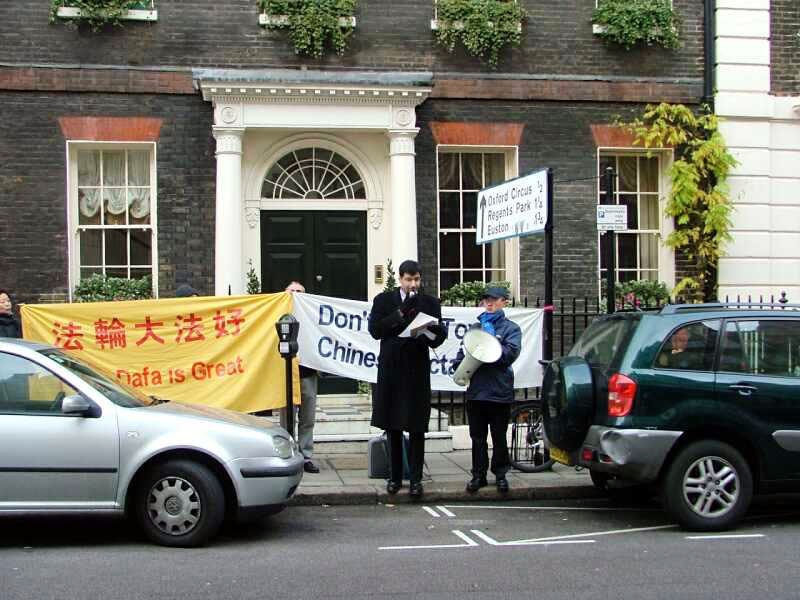 英国法轮功学员在阿根廷驻英国大使馆前呼吁阿根廷勿屈服于中共淫威2005-12-21