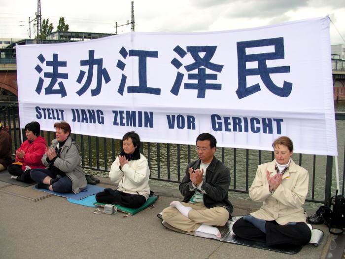 2004年5月27、28日,德国法轮功学员在柏林中国使馆前请愿,支持美国芝加哥的起诉江泽民案