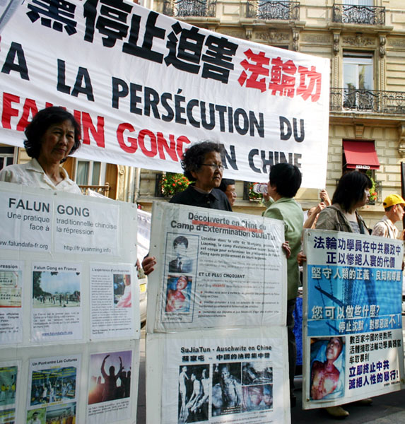 巴黎学员中使馆前纪念「四二五」和平上访八周年 抗议中共对法轮功学员的残酷迫害2007-4-27