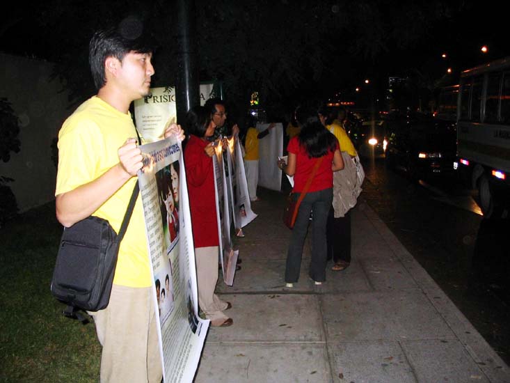 曾庆红访问秘鲁期间 南美洲法轮功学员手持真相图片揭露邪恶讲真相