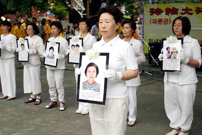 韩国法轮功学员在中国驻韩大使馆前和平请愿 韩国 2004-5