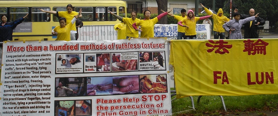 比利时法轮功学员“七•二零”在布鲁塞尔中使馆前谴责中共八年残酷迫害