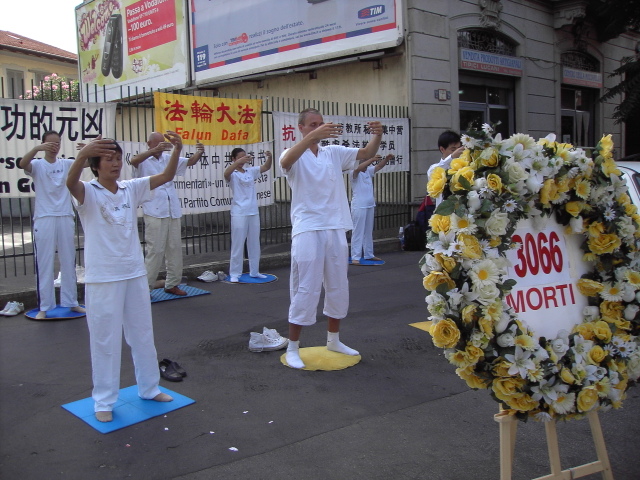 法轮功学员七二零在米兰中领馆前和平抗议迫害八年并悼念迫害致死的同修2007-7-20