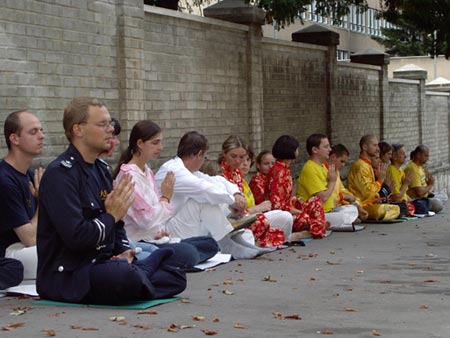 捷克法轮功学员在中国大使馆前请愿,呼吁停止迫害法轮功 2004-09